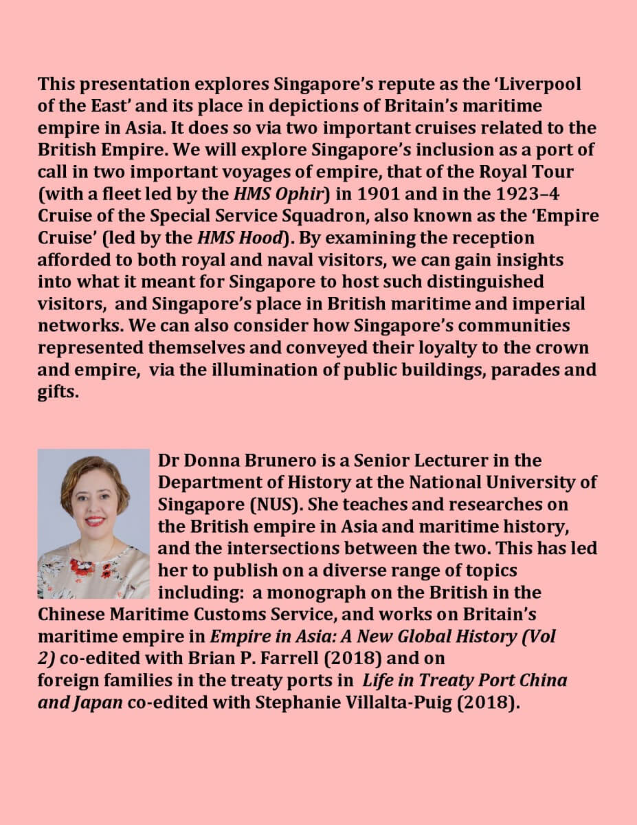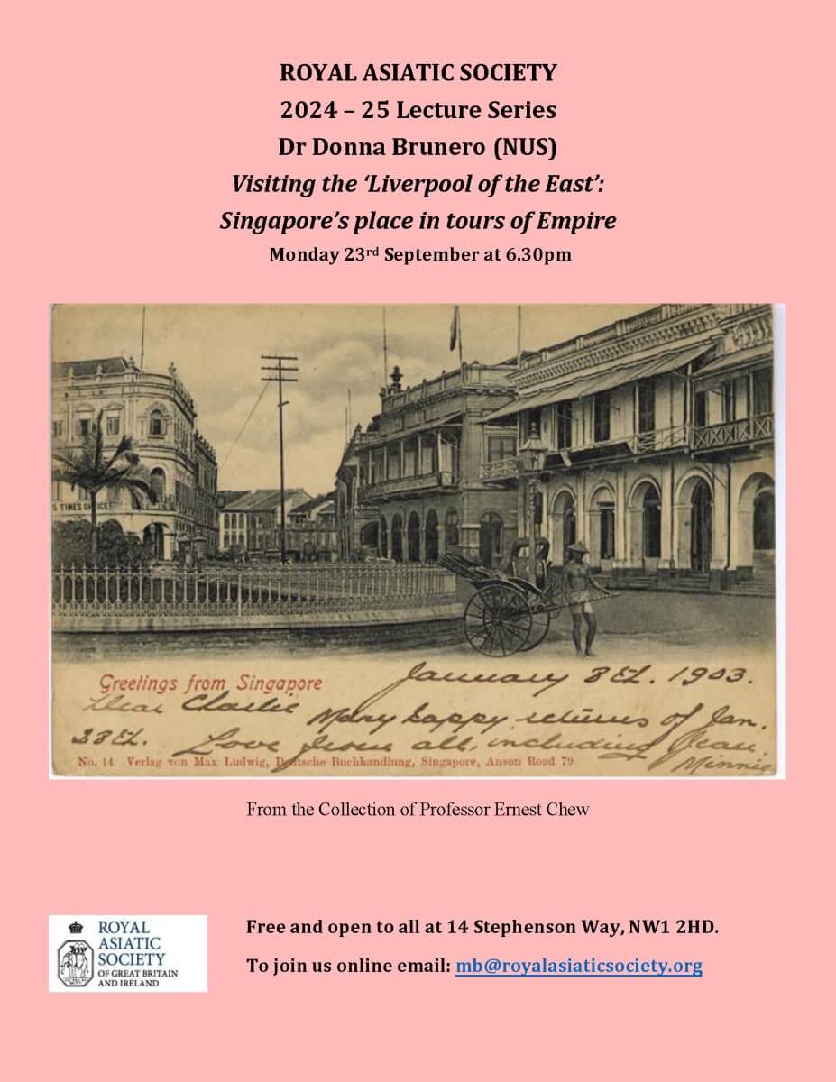 Dr Donna Brunero (NUS): Visiting the ‘Liverpool of the East’: Singapore’s place in tours of Empire