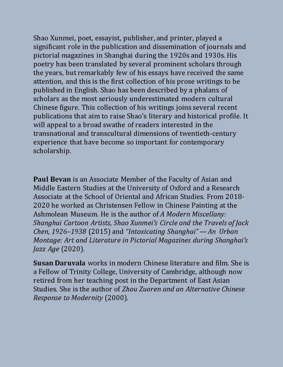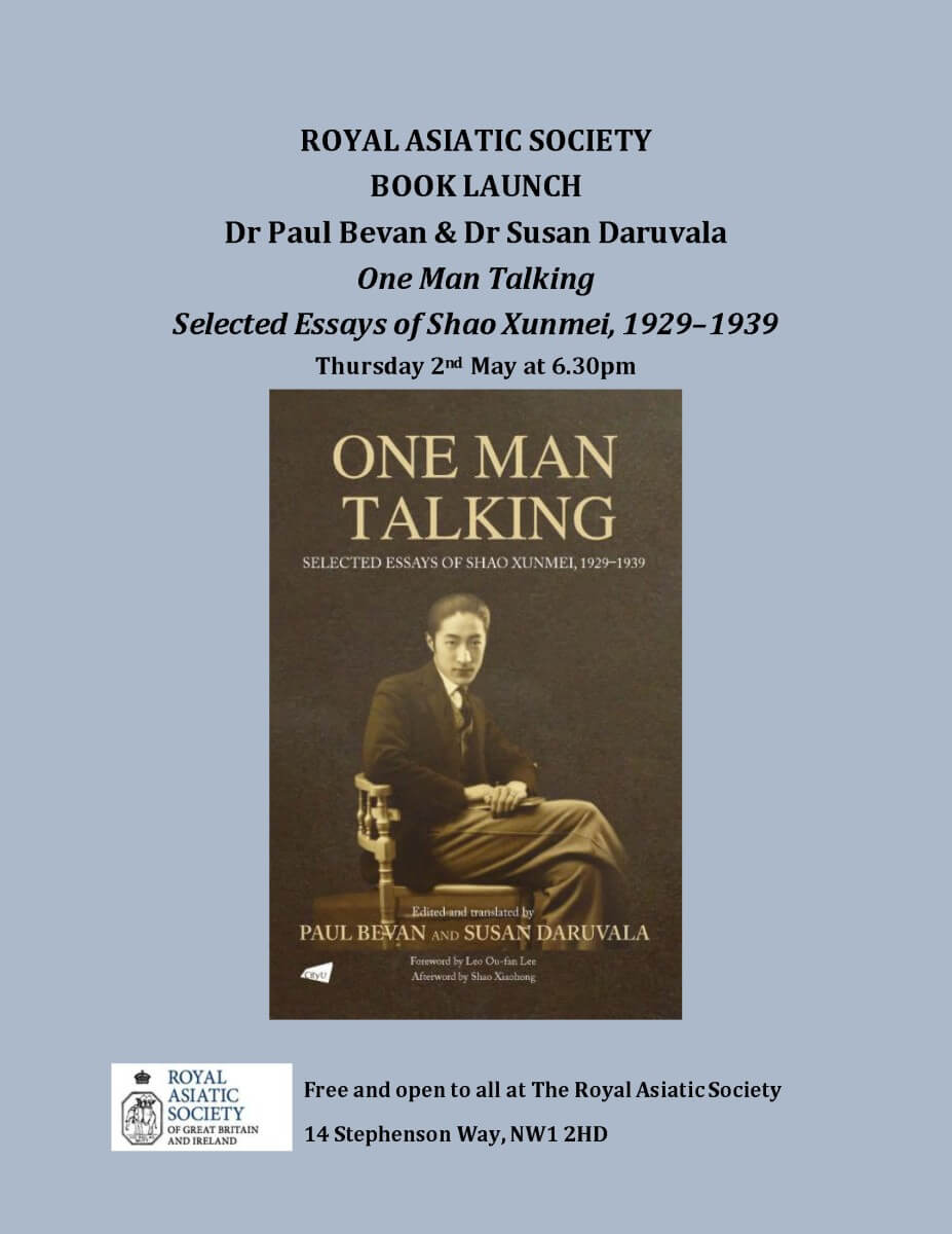 Dr Paul Bevan & Dr Susan Daruvala – One Man Talking: Selected Essays of Shao Xunmei, 1929–1939