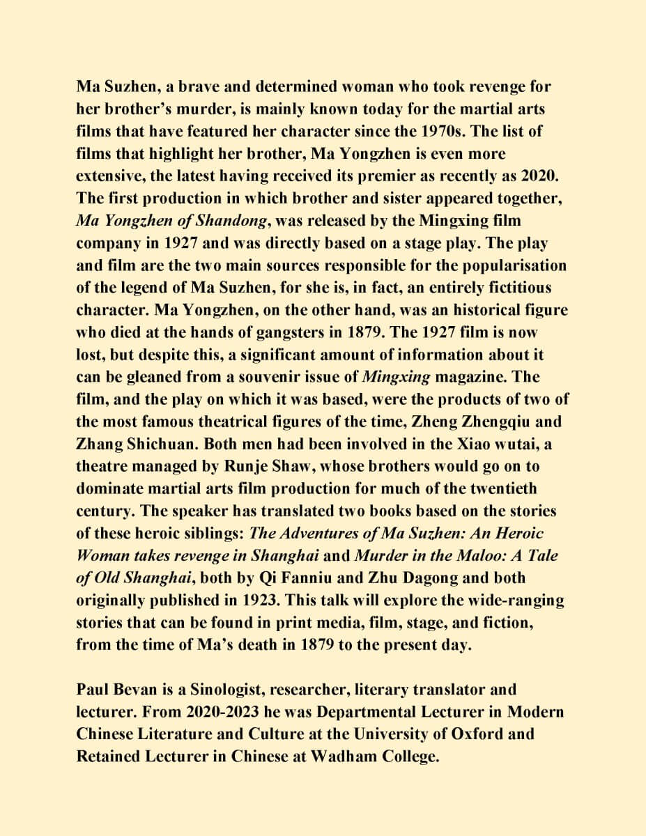 Dr Paul Bevan: Fraternal Revenge – the Legends of Ma Suzhen and Ma Yongzhen