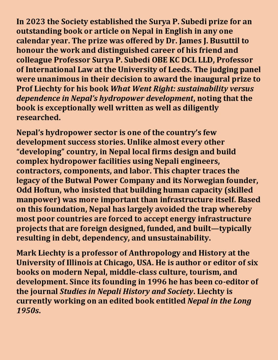 *Cancelled* Prof Mark Liechty (Winner of the 2023 Surya P. Subedi Prize): Building Capacity, Not Infrastructure: Lessons from Hydropower Development in Nepal