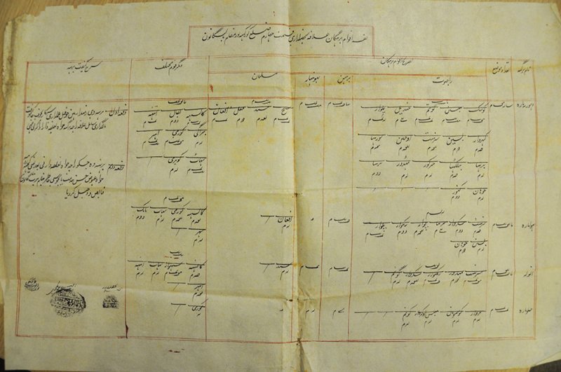 During Elliot’s time in India he held a number of positions, the most notable being in the revenue department. In this role, he collected valuable research on local castes, customs and zamindars (local landowners and tax collectors), which helped in the East India Company’s inheritance of a Mughal system of revenue collection. There are large amounts of manuscripts relating to this work, most which are likely in either Persian or Urdu, and are characterised by official stamps in Arabic scripts and tables drawn in red ink.