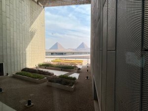 The opening of the Grand Egyptian Museum or GEM situated near the pyramids in Giza has been long awaited with much excitement. It was designed by Heneghan Peng architects of Ireland who apparently only had three members of staff when they won the competition.  The project is estimated to have cost US$550 million and the foundation stone was laid in 2002. The Museum began limited public access in February 2023 and in October 2024 opened 12 main galleries including the Grand Hall and Staircase. It is planned that the Tutankhamun collection and solar boats will eventually be moved from the Egyptian Museum.