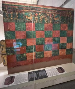 The first impression is one of sheer size as one approaches across a vast plaza. The main entrance is reached by a sloping courtyard containing the only hanging obelisk in existence of Ramses II from Tanis. Its companion graces the centre of Tahrir Square in Cairo. On entering one is greeted by a huge statue of Ramses II which was uncovered in 1882 at Memphis and then placed on Ramses Square outside Cairo’s main railway station in 1955 and moved in 2018 until it was moved here. Statues of various pharaohs and obelisks line the Grand Staircase leading upwards to the galleries (there is a lift and escalator for those who are not so able). From the top of the building one makes one’s way through the dynasties finishing in the Graeco Roman period. There is a myriad of material which attracts interest and the day I was there the galleries were filled with visitors from all over the world eagerly seeking the  secrets of the pharaohs which have continued to amaze the world since antiquity.