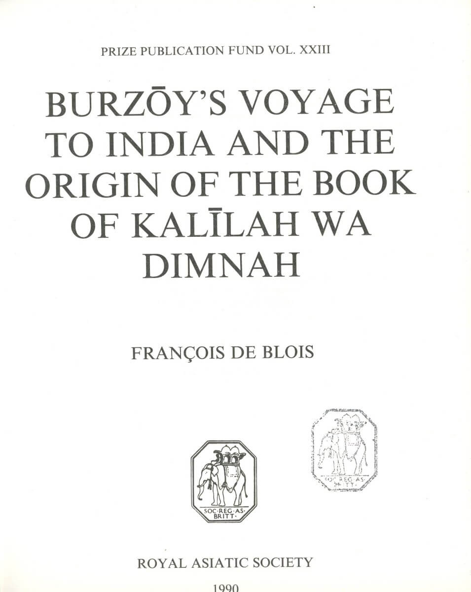 Burzoy’s Voyage to India and the Origin of the Book of Kalilah Wa Dimnah