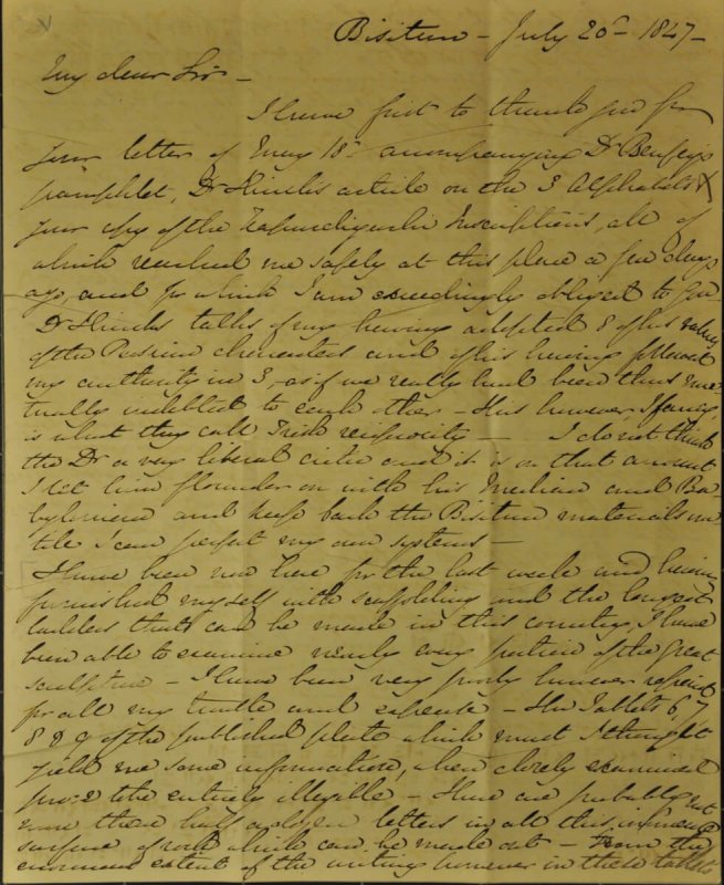 This combination earned him a place in a body of British troops sent in 1833 to Persia to train the Shah’s army. It was during his service in Persia that he saw the great trilingual cuneiform inscription of Darius the Great at Behistun (Bisitoun). He scaled the great rock face, made a copy of the Persian text and started his work on cuneiform decipherment. He also began his association with the Royal Asiatic Society.