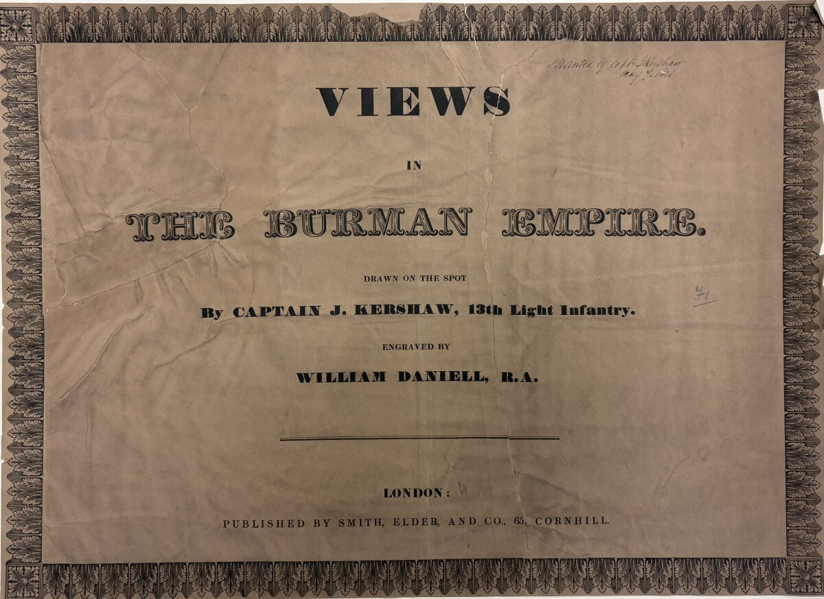 The first is a large‑format album entitled Views in the Burman Empire, published in London in 1831. It contains ten coloured engravings based on paintings of Burma by James Kershaw. The catalogue for the album can be found here.